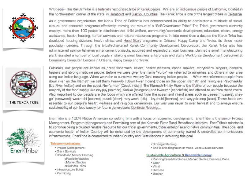 EnerTribe is a 100% Native owned consulting firm specializing in tribal government, with a focus on Economic Development, Communications & Grant Funding. Current EnerTribe contracts include; tribal governments, tribal enterprise, government agencies, companies, municipalities, non-profits and other various organizations. EnerTribe was built by Indian Country for Indian Country.